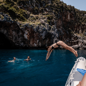 Explore untouched beaches and caves, snorkel in crystal clear waters, jump into the sea, and occasionally spot dolphins.
